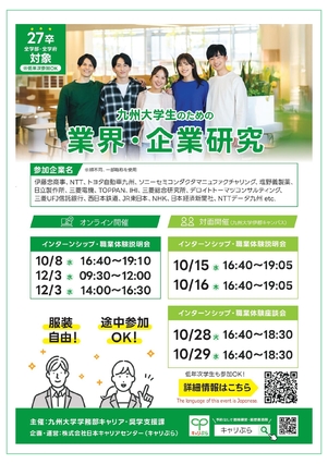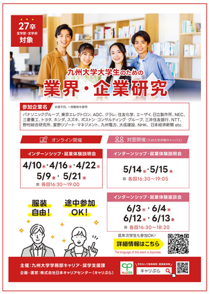 10月〜12月 業界・企業研究 参加企業約100社が、業界・企業やインターンシップについて説明をする、合同企業説明会形式のイベントです |